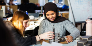 Students collaborate with staff and external parties in a full-scale structure build project.